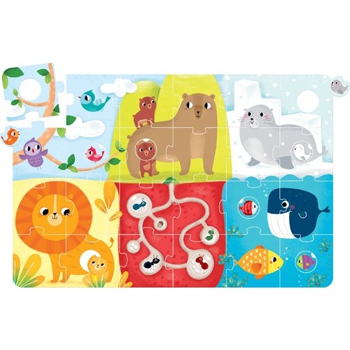 Добредојдовте во фасцинантниот свет на животните! Соберете ги парчињата за да ги откриете овие пријателски расположени животни.Секоја слика се состои од 4 сложувалки, што го прави овој едукативен сет одлична забава за малите деца кои веќе ги започнале своите а..