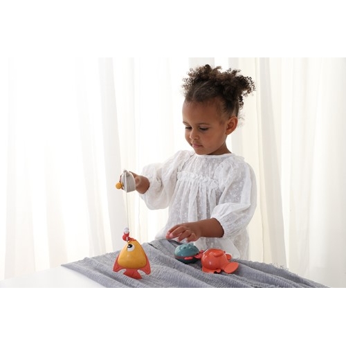 Музичкиот часовник Тик-Так ги запознава децата со препознавањето на времето и броевите. Свртете го носот на часовникот за да ги придвижите стрелките и уживајте во нежниот звук на тик-так, тик-так. Навиткајте го часовникот нагоре за да ја слушнете музиката.Потт..