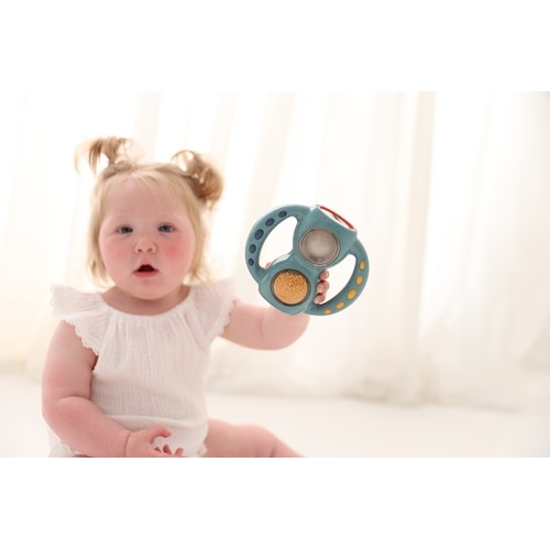 6+ месеци - Покажете му на вашето бебе што прави секое од шесте поединечни парчиња. Покажете дека можете да нишате и да ја штракате основата, да ја користите капата како свирче, да вртите, да штракате, да чкрипете и да ги тркалате другите парчиња. Плус покаж..